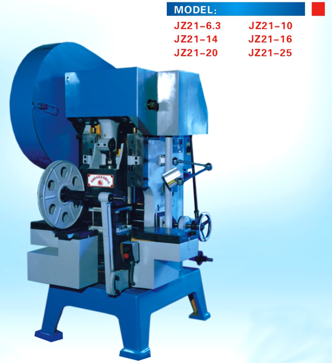 JZ21系列压力机是自动压力机,配有左、右、前三个机械滑板,辊式送料装置,可进行单机多工位自动化生产,适用于表带工业、电器仪表工业、金属器皿工业、玩具工业、各种五金制品、首饰等工业的剪切、冲孔、落料、弯曲、浅拉伸和复合成形等冷冲压加工。